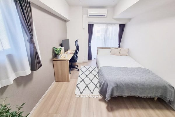ベッドや洗濯機、冷蔵庫、電子レンジなど生活必需品を備えています。電気・ガス・水道も利用可能な状態でお渡しするため、入居当日から快適な生活をスタートできます。スーツケースひとつでの入居が可能で、スタッフの負担を大幅に軽減します。